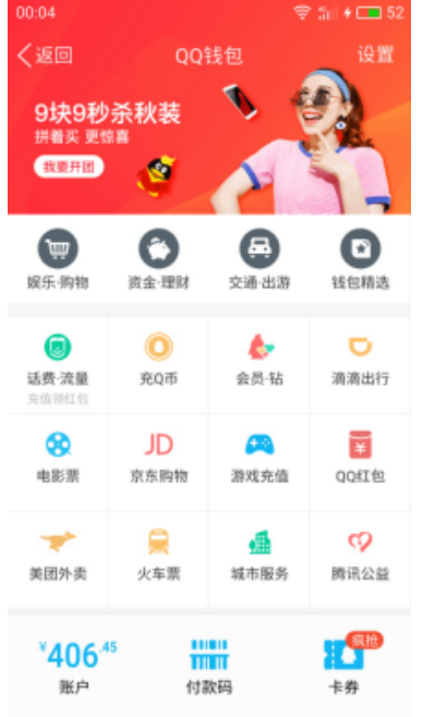 1、打开手机QQ,滑动屏幕,可以找到【QQ钱包】的选项,