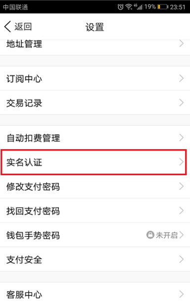 3、进去设置界面之后,选择实名认证,如下图所示,