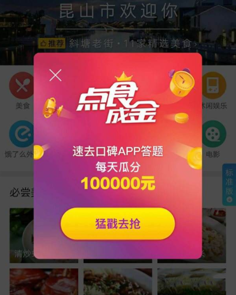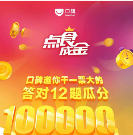2.支付宝口碑今天出答题了:点食成金!都是和吃的有关,口碑里有题库,人少钱多,等于支付宝过年送钱了!