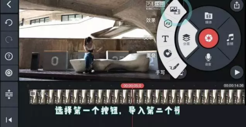 点击右上角的分层然后选择第一个视频按钮,导入第二个视频