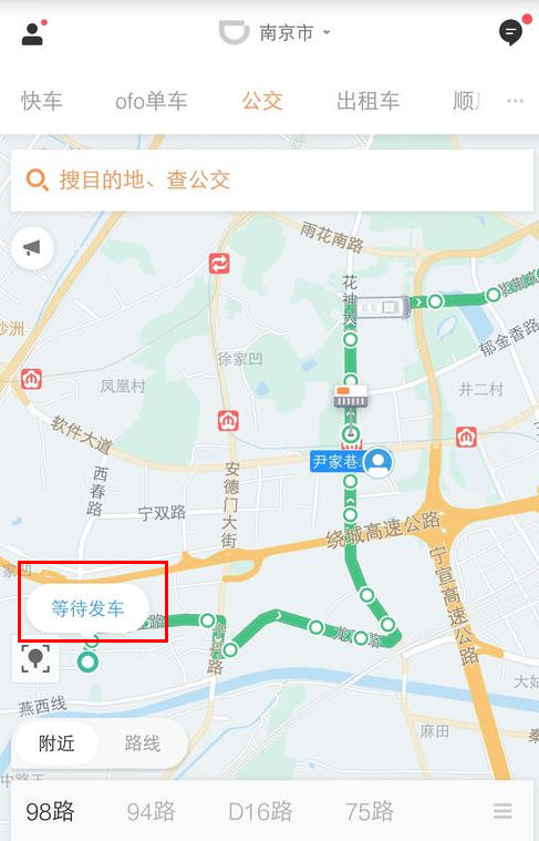 5.然后我们返回刚才的界面,就可以看到98路的路线以及现在的位置,如图98路现在正在等待发车