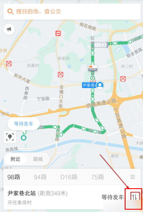 如果路线的方向不对,那么你而已点击如图红框中的按钮,切换方向