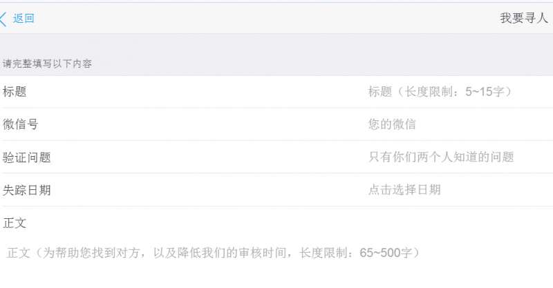 1. 标题请以 寻 or 找 开头; 或能以这两个字开头组成句子,尽量简洁, 这样可以帮助您更快找到对方。