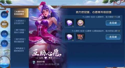 王者荣耀心愿单活动有什么玩法?有很多小伙伴们都不知道,那么下面就由小编来为大家带来心愿单活动玩法介绍吧,希望能够帮助到大家。