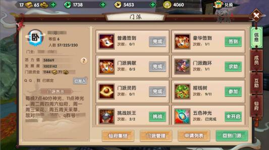 任务介绍:门派活动需要做的就是每日的签到、门派捐献、门派灵药、门派跑环、挑战妖王、五色神光、清缴精英、玫瑰佳人。