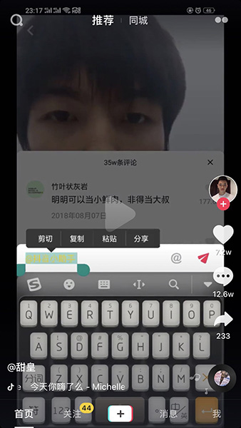 具体的才做方法,点击评论,然后随便艾特一个人,然后全选之后输入自己想说的话,然后发布就可以了。具体操作如下图。