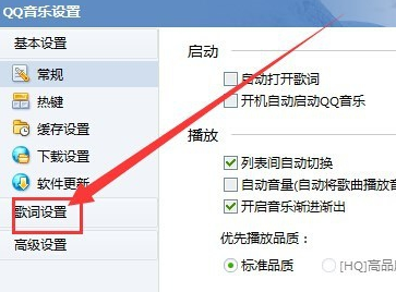 2.打开“设置”之后,在QQ音乐设置的界面上找到“歌词设置”并且打开。