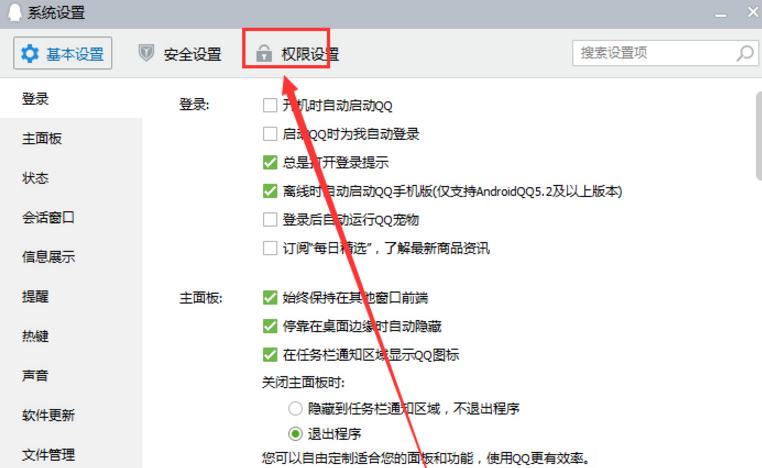 1、在电脑上登录QQ,登陆后,点击主面板的菜单按钮,选择“设置”选项,