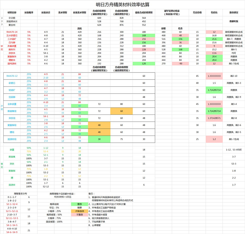 在大数据统计的情况下,部分标注“小概率”的关卡实际上综合产出情况是优于低级精准产出关的,但具体刷取情况还需结合个人需求决定。