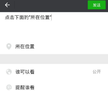 和往常发朋友圈一样,编辑好要发的内容后,点击下面的“所在位置”