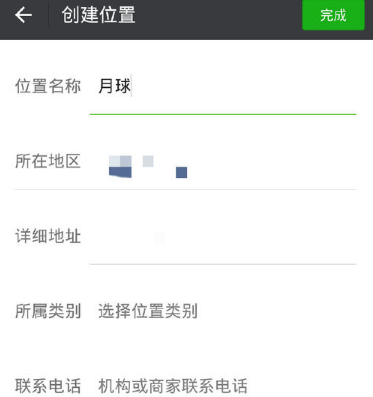 点击后就会出现下图所示的界面,点击一下“完成”,你要自己定位的位置就创建完成了