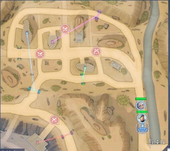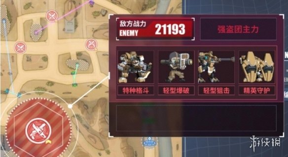 出战后我们位于右下角的出生点,需要先清理道中小怪,按顺序开绿色和粉色两道门,解决掉拦路的敌人后等待团长开启蓝色门。清理完下方小怪进入红色门控制室可对团长进行迫害,之后车队会按原路返回,新增两只小怪,干掉后进入Boss战。下面来看这张地图出现的敌人。