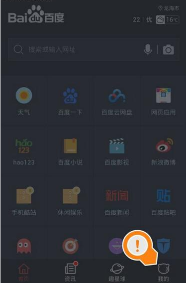 1、打开手机百度浏览器,进入主界面后,找到“我的”这个功能选项,点击进入。