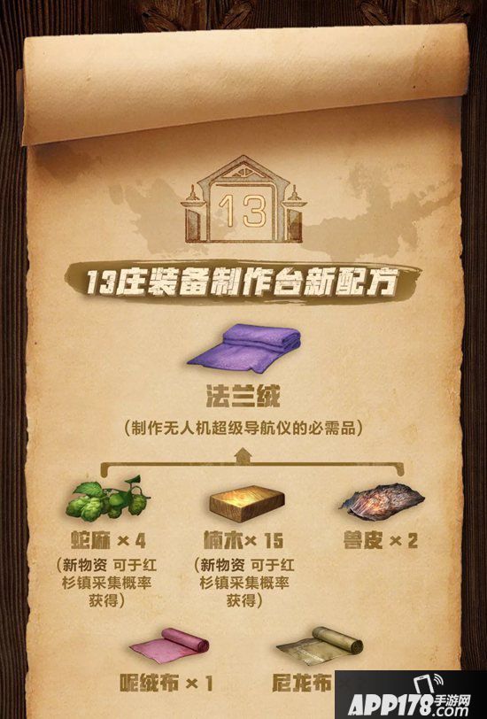 新出现法兰绒和汞齐两种新半成品配方,合成这两种材料分别需要蛇麻、楠木、水银3种新物资,都可以在红杉镇采集获得,另外,超级能量核心和五级试剂现在也可以制作啦。