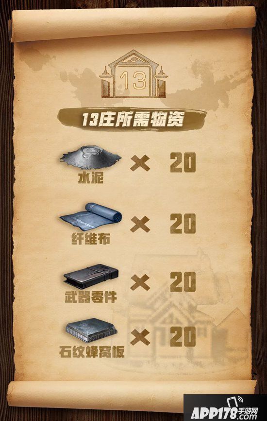 成为13级庄园主需要满足的物资条件如图所示,三种熟练度也要达到65级的标准哦,成功升级13庄后,会得到70级的熟练度上限。