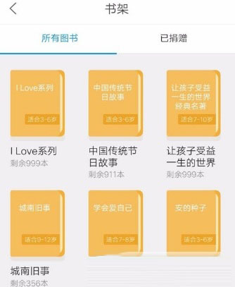 这是精灵书屋的主页面,在这可以进行能量获取并捐赠图书。每本捐赠图书需要积攒1000个能量才可以。