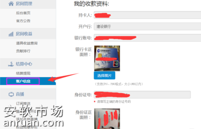 3.在提现之前你需要提交你的银行卡信息照片和身份证信息照片,一定要正确的卡号和身份证号才能提现到你的卡中、请主播们一定要弄准确哦(见下图)