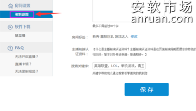 另外想设置房间信息的请点击“资料设置”进行房间信息设置,比如直播的标题和房间名称设置都在这里