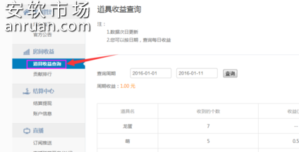 主播们想看昨天收到的礼物有多少个是什么礼物就到“道具收益”中查看礼物信息、