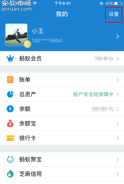 1、首先打开支付宝客户端,进入到【我的】页面,在其页面的右上角看到【设置】字样,点击一下,如图所示。
