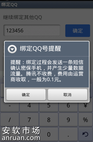 2、输入您要继续绑定的QQ号码,并点击。【确认】。