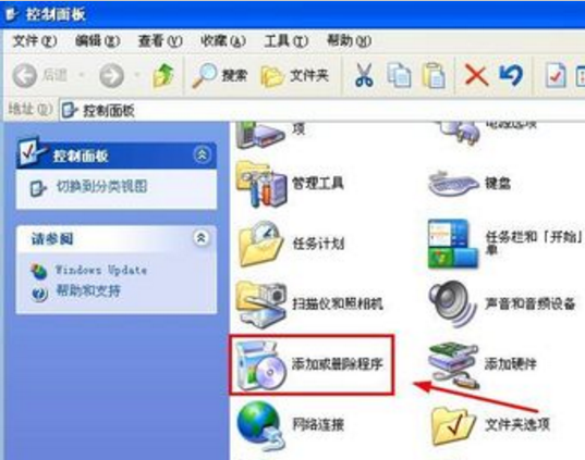 在控制面板中找到添加删除程序的选项,步骤如下所示;