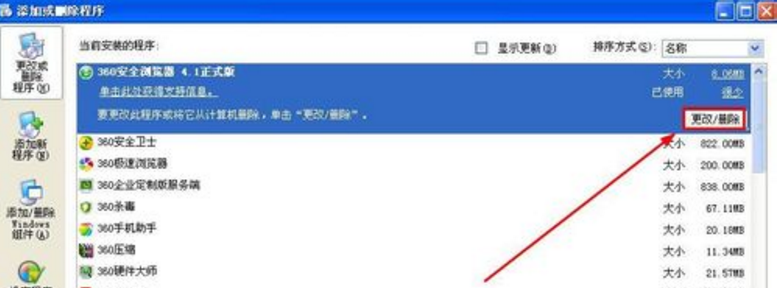 然后找到360安全浏览器,点击删除就可以了,步骤如下所示;