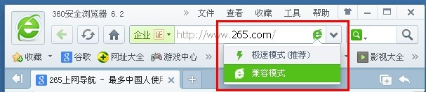 我们这个时候选择兼容模式即可。现在的浏览器就是兼容模式了,兼容模式能打开一些极速模式不能打开的网页。如果是选择极速模式的话,也是一样的操作,只要选择一下就行了。