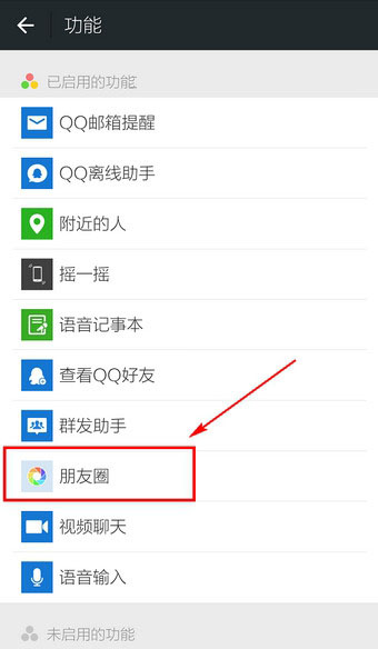 这里便是你的微信已开启的功能,其中就包括朋友圈