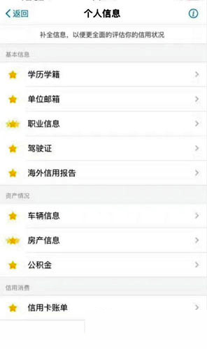 6、车辆、房产、公积金,有这些信息的,直接按照要求给他便是。没有的呢,也不需要强求去找别人PS如果被查到信用分还会下降,在这个信用第一的社会会寸步难行。