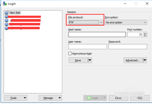 选择新建站点,file Protocol选择ftp,然后输入相应用户名、密码,点击save,选择是否保存用户名和密码。