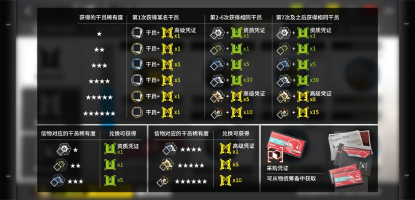 月卡玩家再加上月卡6000合成玉共30次寻访。 十连寻访获得绿票: