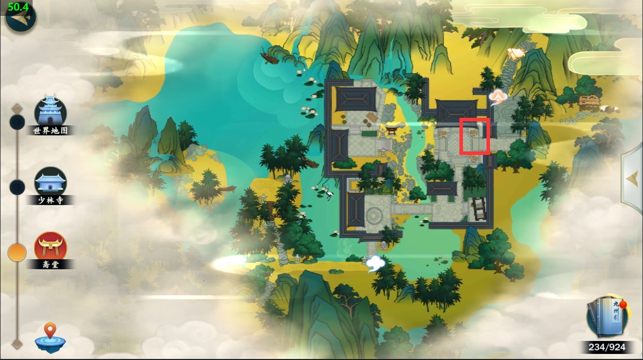 不过,我们要先到斋堂,在斋堂旁边找到发布任务的关键NPC才行。(发布任务的NPC就在图中红圈处)