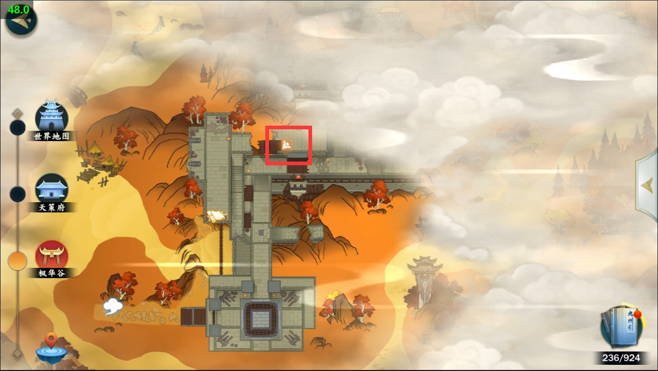 来到枫华谷以后,我们要找到冷天锋(图中红圈位置)。然后按照一贯的套路,利用对话,触发任务就好。
