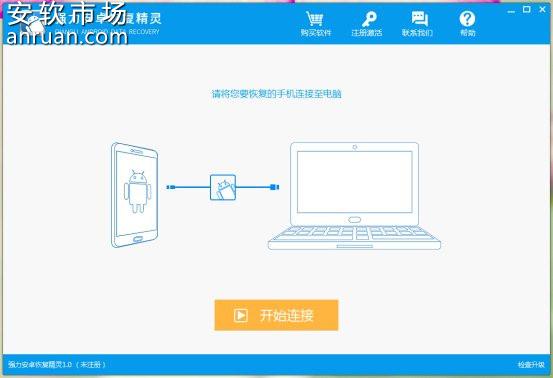 3、把安卓手机通过数据线连接到电脑上,连接后电脑会自动弹出我们安装好的强力安卓恢复精灵,如果没有弹出那么我们手动打开该软件即可。