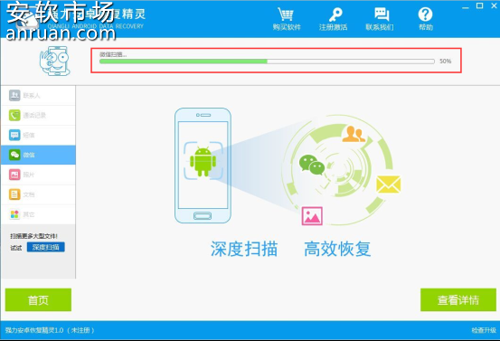 1、首先我们需要在电脑上面下载一款强力安卓恢复精灵,软件支持所有安卓手机的数据恢复(微信聊天记录恢复、手机照片恢复、手机短信恢复以及微信联系人恢复)。