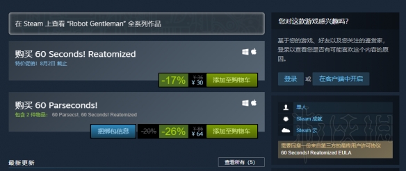 玩家可以直接前往steam商城,打开60秒重制版页面,添加到购物车后付款购买。