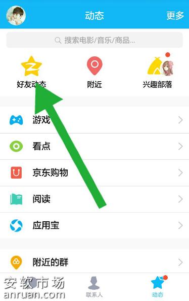 2、进入到动态界面以后,找到“好友动态”这个功能选项并点击进入,如下图