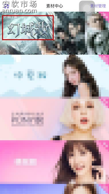 2、跳转至“素材中心”后最上方就能够看到我们刚刚下载的幻城妆,点击进入详情页;