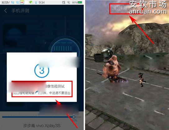 2.手机储存卡CPU等测试完后就会进入【2D/3D性能测试】要略等2~3分钟,直接就开始【3D性能评测】了。