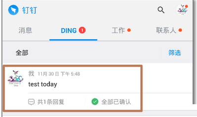 布一条Ding消息。在钉钉的DING界面,点击钉图标。