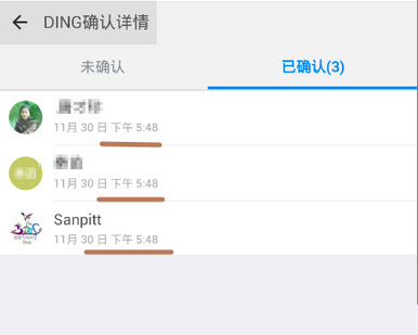 若只有部分人员确认,可以进入DING确认详情中查看哪些人确认收到了,哪些接收对象没有确认,可以再次提醒对方查看。