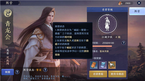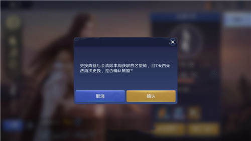 5.更换惩罚:当玩家更换阵营时(加入崛起阵营除外),扣除一定比例当周获取的江湖名望