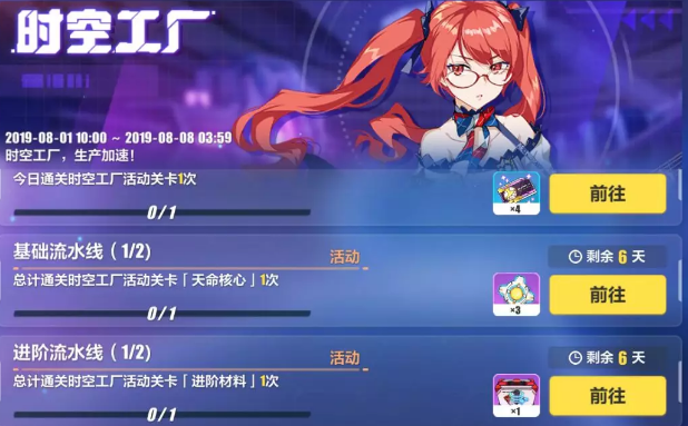 8月1日10:00~8月8日4:00,将开启「时空工厂,生产加速」活动。舰长完成活动任务,可以额外获得4张「工厂通行证」,以及天命·虚数核心、进化材料自选箱等奖励!