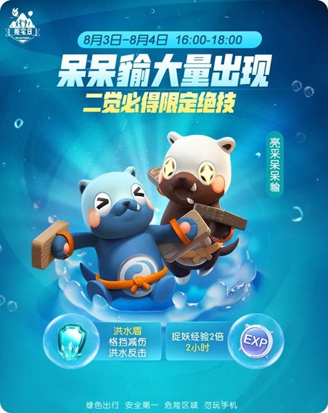 将呆呆貐在8月3日00:00至8月10日23:59期间觉醒至最高阶必定获得绝技“洪水盾”。