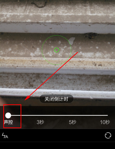 我们发现在屏幕的下方出现了倒计时的选项,里面有声控、3s、5s、10s。这代便什么呢?这代表打开声控或者延迟3s、5s或者10s拍摄。我们选择声控,下方的拍摄按钮就会自动变成话筒,这时候我们就可以将镜头对准想拍摄的地方,然后喊“茄子”!拍摄成功。