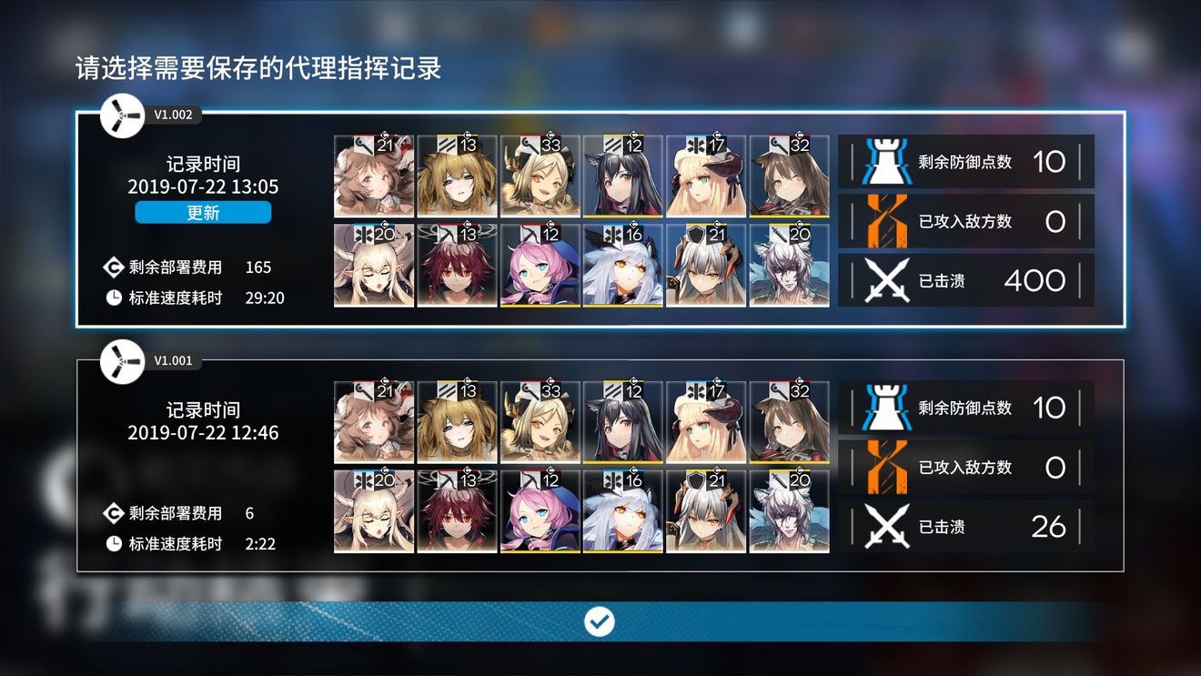 阵容伤害有些溢出了,最后一波大锤也只撑到第二锤就挂了,实际练度可以下调,所有技能都没有专精。