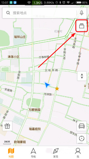 1、打开腾讯地图,点击右上角的图层按钮。