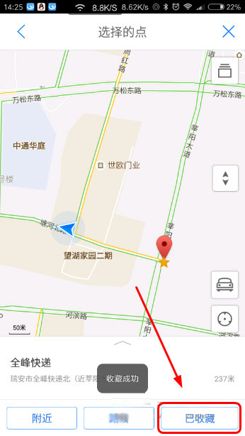2、点击右下角的【收藏】,你可以看到地图上就会出现一个五角星的标记。
