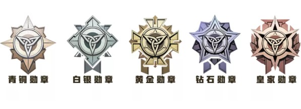 皇家等级最多可有25人,等级依次往下可获得荣誉勋章的最多人数分别为75、100、200、400人。